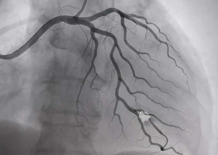 - في كثير من الحالات، يتم إدخال دعامة معدنية لضمان بقاء الشريان مفتوحًا.